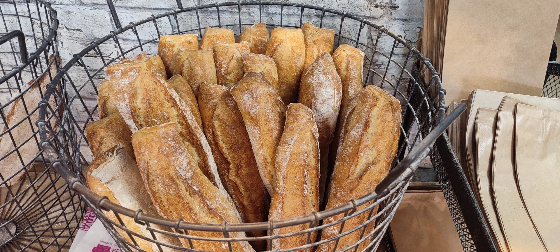 Notre baguette signature au levain, à la mie dense et légèrement colorée, savoureuse et inoubliable.