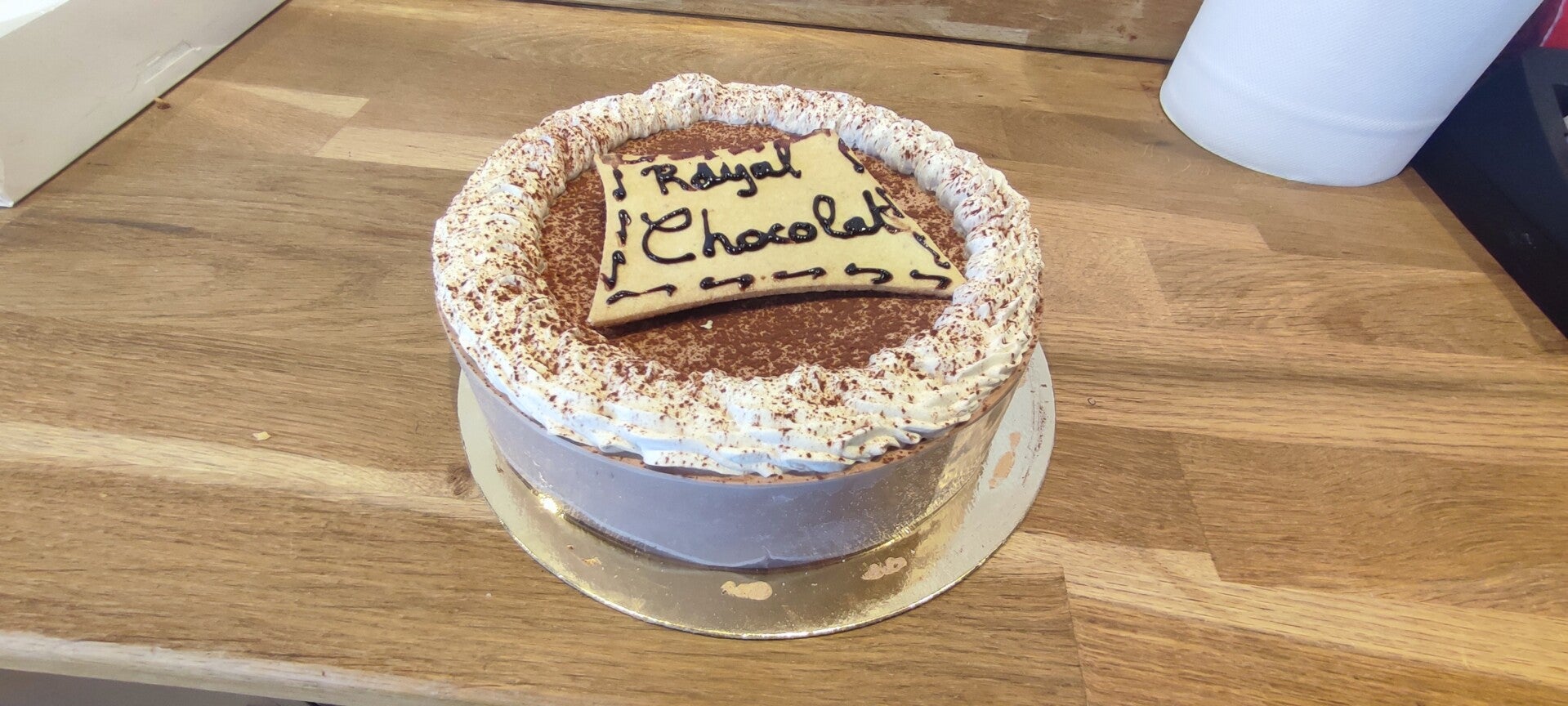 Un entremet chocolaté à partager, avec une base de dacquoise aux amandes, surmontée d'un croustillant praliné, d'une mousse au chocolat au lait légère et saupoudré de cacao en poudre ou agrémenté de chantilly selon l'humeur des pâtissiers.