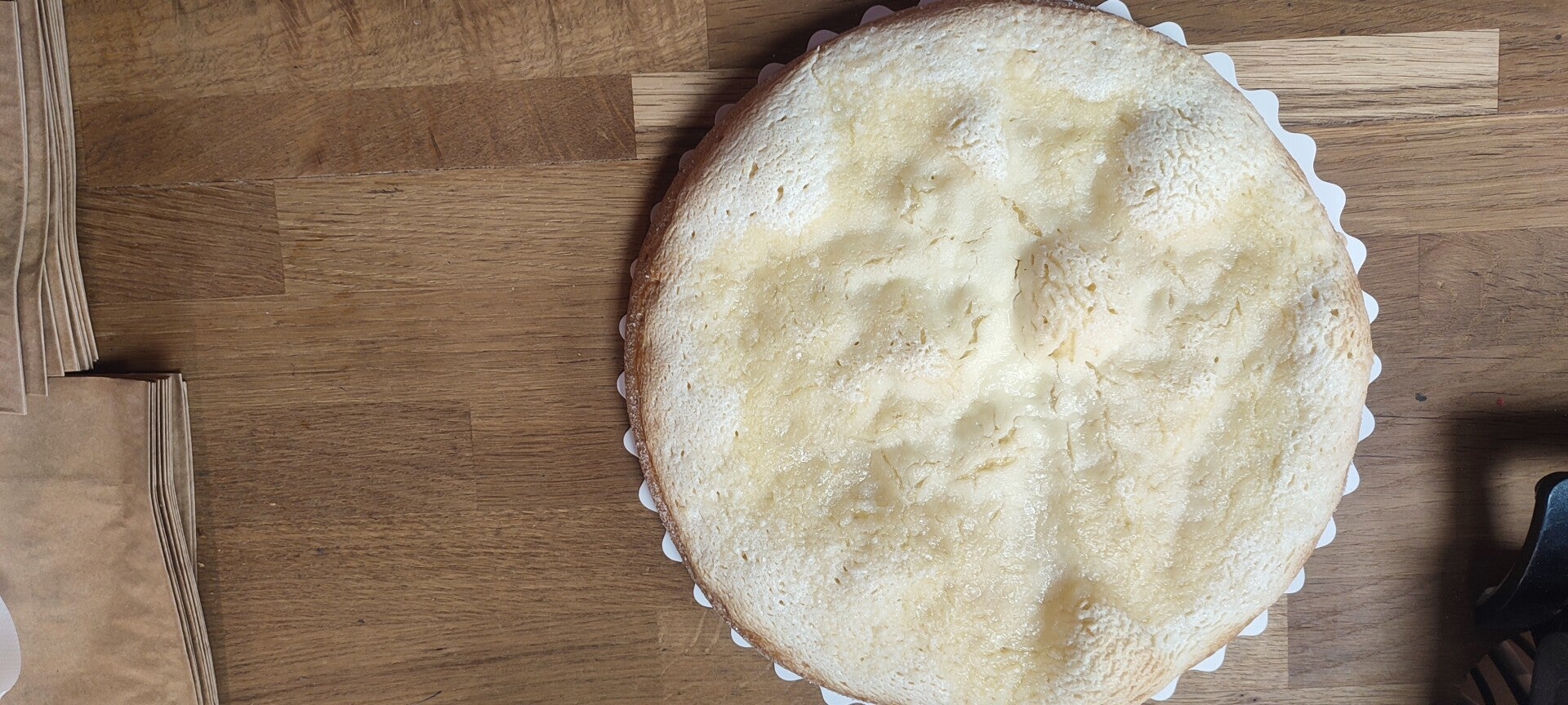 La Galette Bressane, dans sa version sucrée, se compose d'une pâte briochée, recouverte de crème et des perles de sucre.